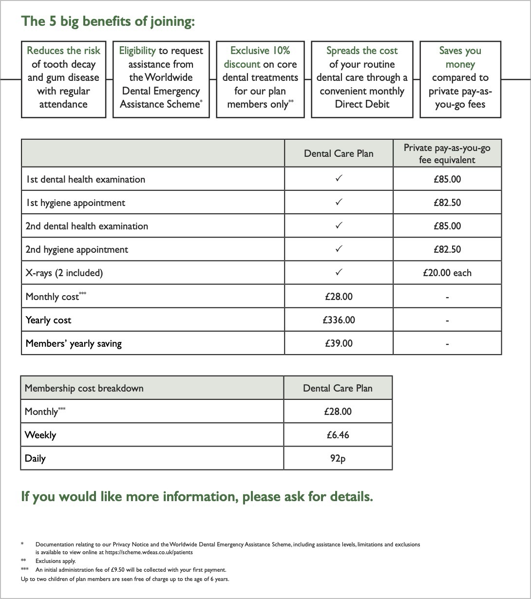 We believe the best way to maintain healthy teeth and gums is to join our monthly membership. Our range of dental plans encourages a preventive approach to your dental health needs and regular attendance to enable us to spot any problems before they arise.